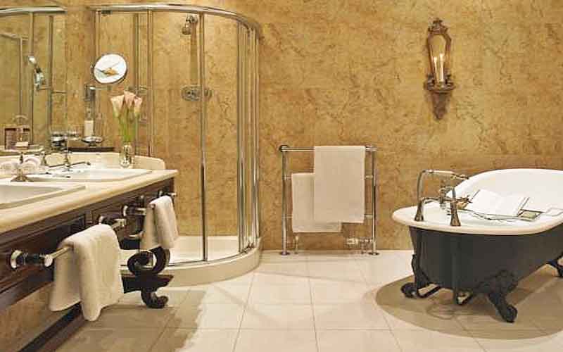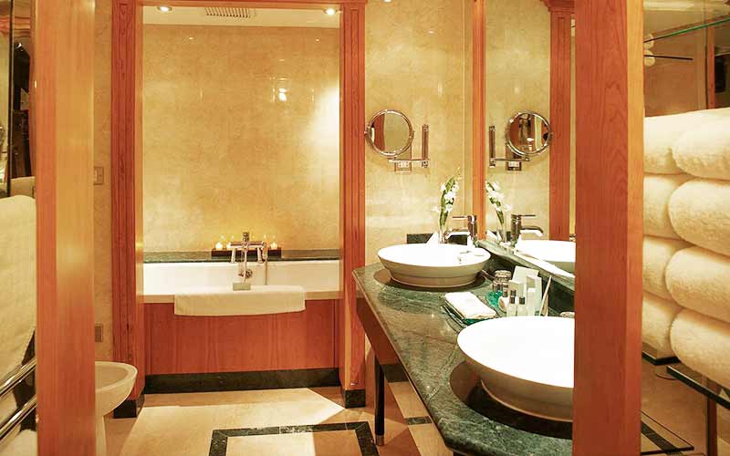 The hotel has almost 200 rooms, all of which are decorated in traditional furnishings with navy carpeted floors, antique-style furnishings and brass lamps. Rooms are spacious and clean, with desks and seating areas, while amenities include safes, free Wi-Fi, and flat-screen TVs. Bathrooms are clean and topped with Italian marble and provide high-end Comfort Zone toiletries, robes and slippers. -